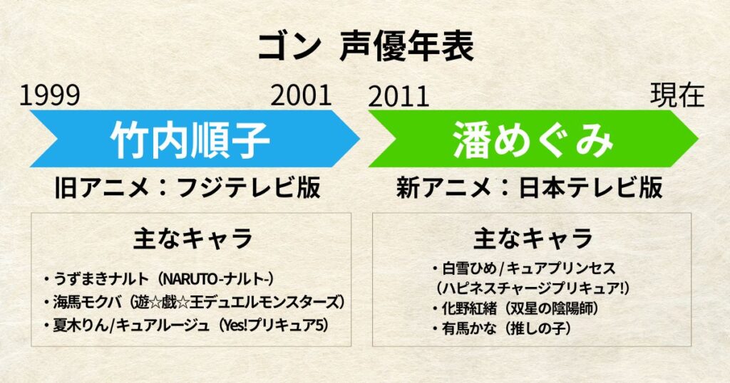 | ゴン役 | 竹内順子さん | 潘めぐみさん |